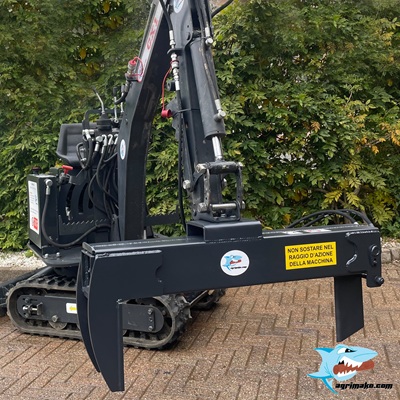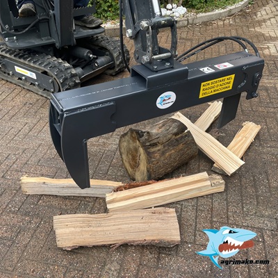 Spacca legna per miniescavatori. Adatto per spaccare tronchi fino a 750 mm di lunghezza, con forza di spacco di 9,5 Ton. La pressione di utilizzo massima è di 150 bar, adatto per essere utilizzato su micro escavatori CX1 o altre macchine con ridotte pressioni, caricatori forestali e miniloader.
